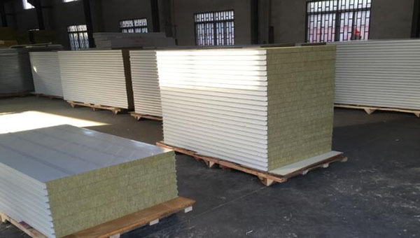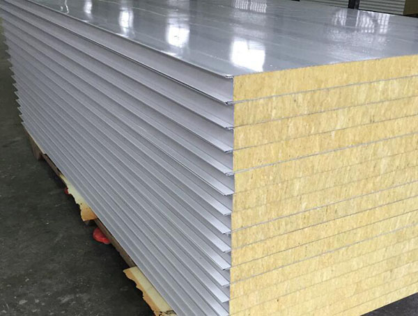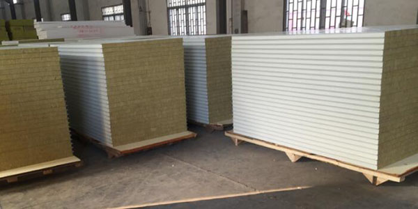 1)上下表面:采用鍍鋅彩色鋼板,厚度為0.4-0.8mm。根據客戶的具體要求,也可采用鍍鋁鋅彩色鋼板或鍍鋅鋼板。鋼板先經成型機軋制成型后在與巖棉工廠復合。